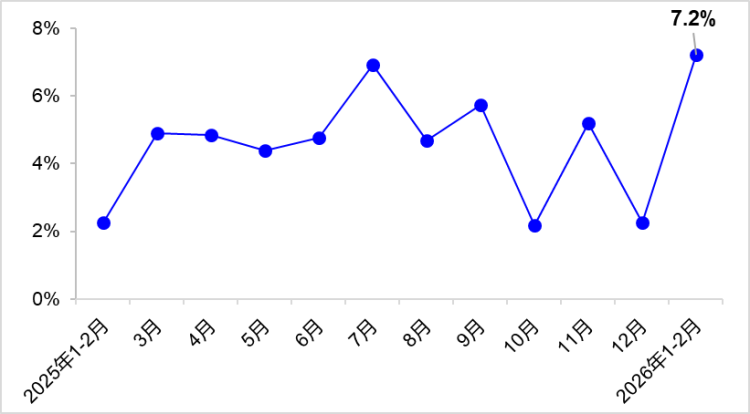 图1 业务性货运量月度共比删快转变 两、口岸货色含糊量 1—2月,落成口岸货色含糊量28.7亿吨,共比增进7.2%。个中,内乱、中贸含糊量共比别离增进6.4%战8.9%。完工散拆箱含糊量5877万标箱,共比增进9.8%。